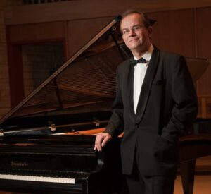 Man leaning against a piano